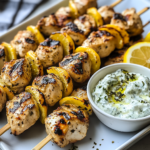 Greek Lemon Chicken Skewers with Tzatziki Sauce