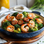 This Honey Garlic Shrimp with Sausage and Broccoli: A Delightful Dish is the ideal choice for a weeknight meal. The combination of succulent shrimp, flavorful sausage, and vibrant broccoli, all glazed in a sweet and savory honey garlic sauce, makes for an exciting dinner that will satisfy your cravings. Whether it’s a busy weekday or a cozy weekend gathering, this dish shines in simplicity and taste.
