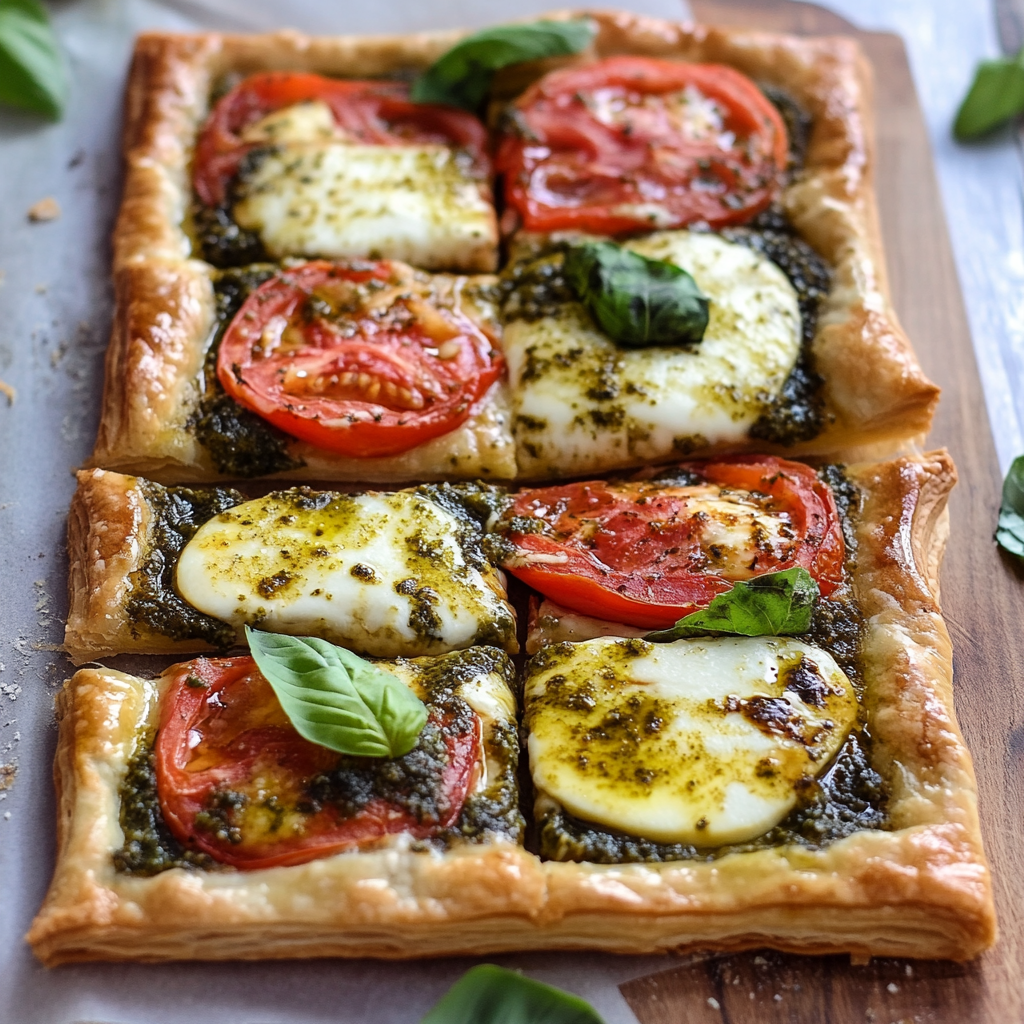 Pesto Caprese Puff Pastry Pizza
