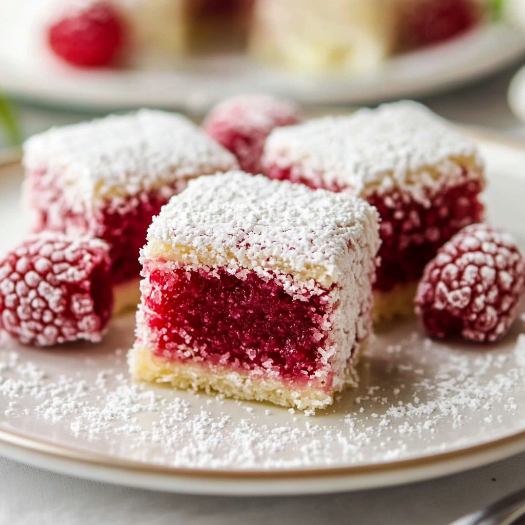 Indulge in the delightful taste of homemade Raspberry Lamingtons, a vibrant treat that combines soft sponge cake with a luscious raspberry glaze and a generous coating of coconut. Perfect for parties, afternoon tea, or simply satisfying your sweet tooth, these light and fluffy squares are as visually appealing as they are delicious. With straightforward steps and accessible ingredients, this recipe is perfect for bakers of all levels. Enjoy them plain or dressed up with toppings for special occasions. Whether shared with friends or enjoyed on your own, these Raspberry Lamingtons will surely be a hit!